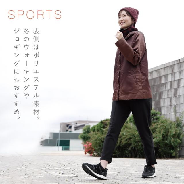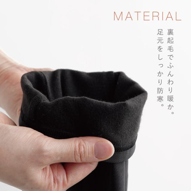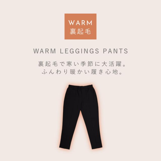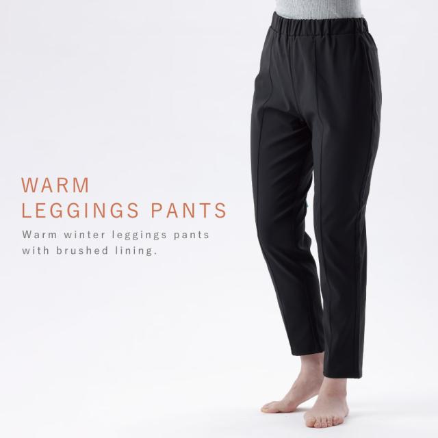 裏起毛で冷えにくく、寒い季節に大活躍のあったかレギンスパンツ。肌にあたる部分が起毛なのでふんわり心地よい肌触りです。表側はポリエステル素材なので、冬のウォーキングやジョギングにもおすすめ。