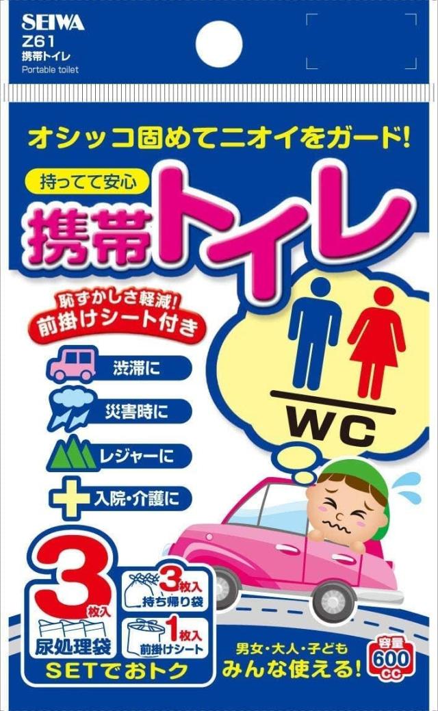 セイワ(SEIWA) 車内常備用品 携帯トイレ 3枚セット Z61 前掛けシート付き 600cc 緊急時 災害 車中泊 ロングドライブ時