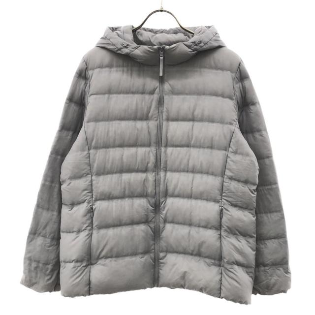 ユニクロ シームレス ダウンジャケット XL ライトグレー UNIQLO フード付き ナイロンジャケット 収納袋付き レディース