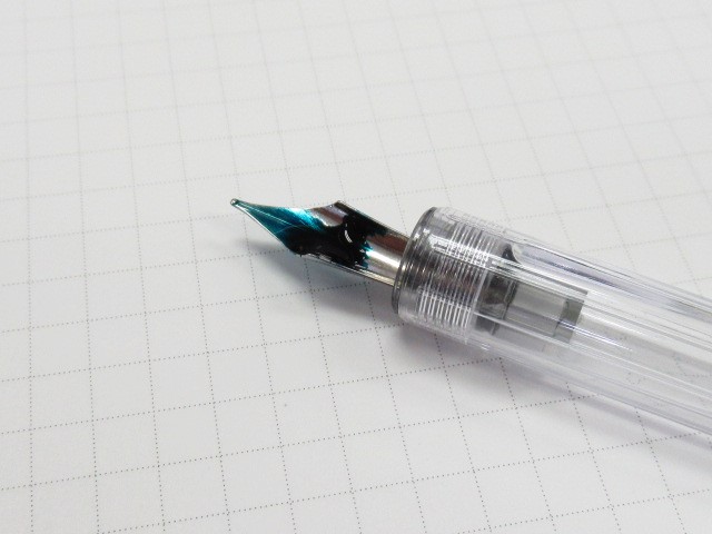 一度つけて何文字くらい書けるのか、一般的には30文字〜50文字と言われていますが、試したところ細字は230文字、中字は30文字書くことができました。思っていたより多くの文字が書けるのと、インク量が一定でボタ落ちもありません(かなり優秀なペンです)