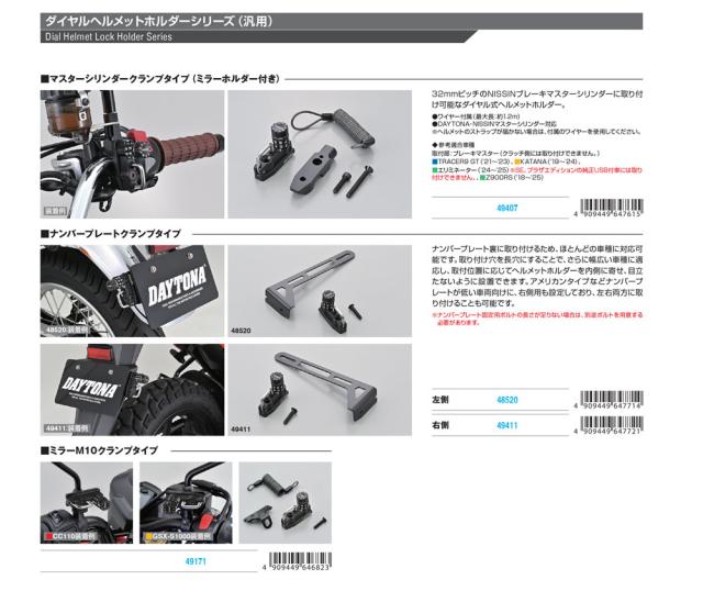 デイトナ(Daytona) バイク用 ヘルメットロック ミラー用(M10) ワイヤーロック(1200mm)付属 ヘルメットホルダー ダイヤルタイプ 49171