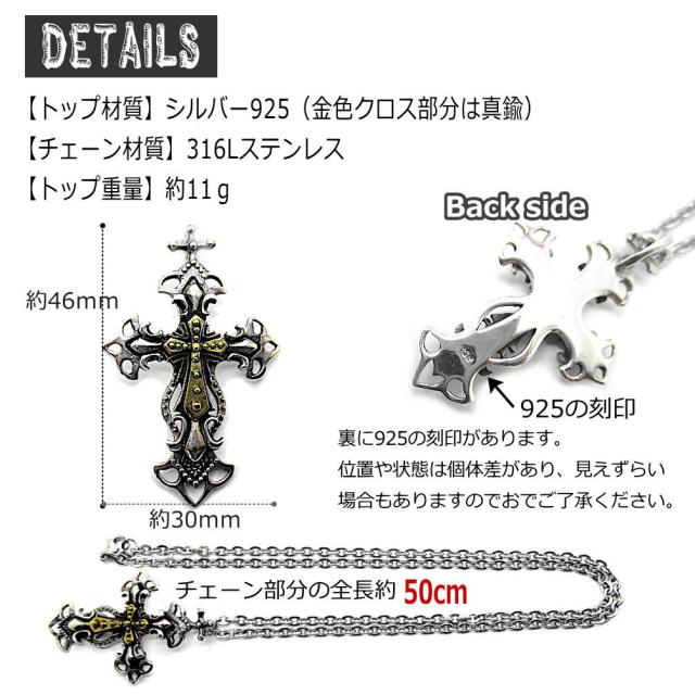 シルバー 925 銀製品 銀 トップ と ステンレス製チェーン メンズ クロス 十字架 かっこいい 大ぶり 男性 ペンダント ネックレス ジュエリー メンズ 男性 t033