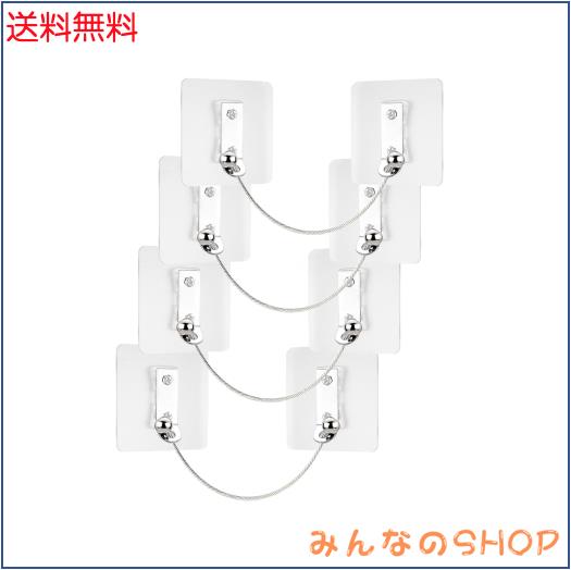 【素材&サイズ】ステンレス鋼、ポリカーボネート、ワイヤーロープ径1.5mm、長さ250mm、ワイヤーの最大耐荷重は100kg、4個セット。