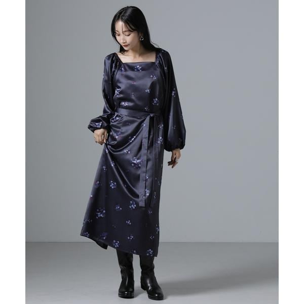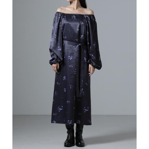 程よい肌見せでフェミニンで女性らしい雰囲気のワンピース。トーンを抑えたシックなフラワープリントで秋冬に映える一枚。ヒールパンプスを合わせてオケージョンシーンにも対応可能な着回しの幅が広いアイテムです。