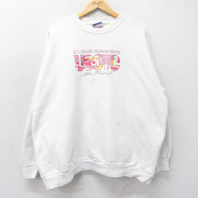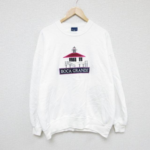 古着 長袖 スウェット メンズ 90年代 90s 家 刺繍 クルーネック USA製 白 ホワイト XLサイズ 中古 スエット トレーナー トップ 中古 古着