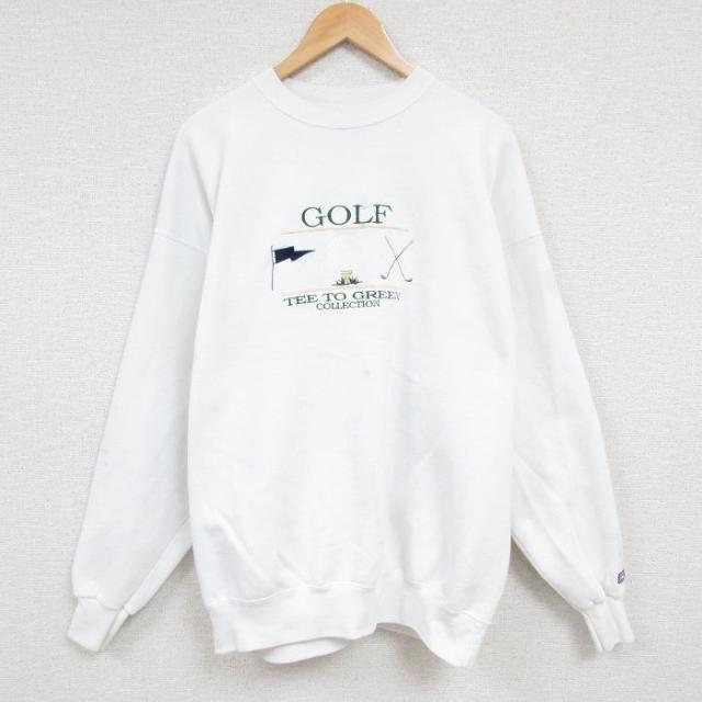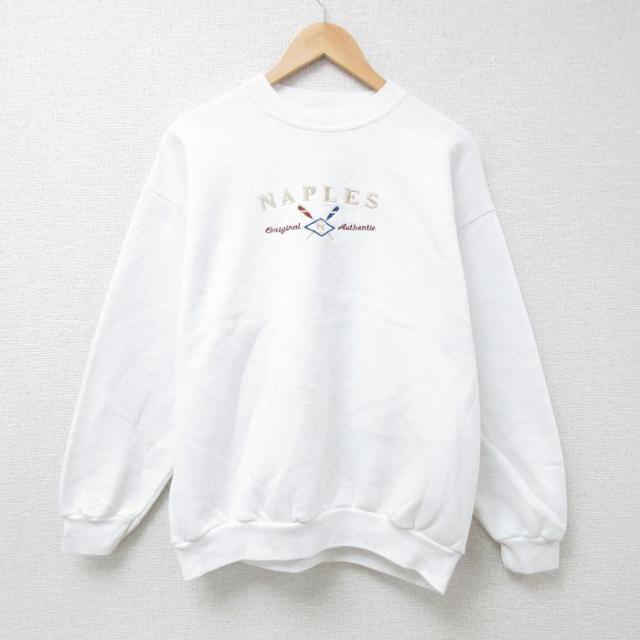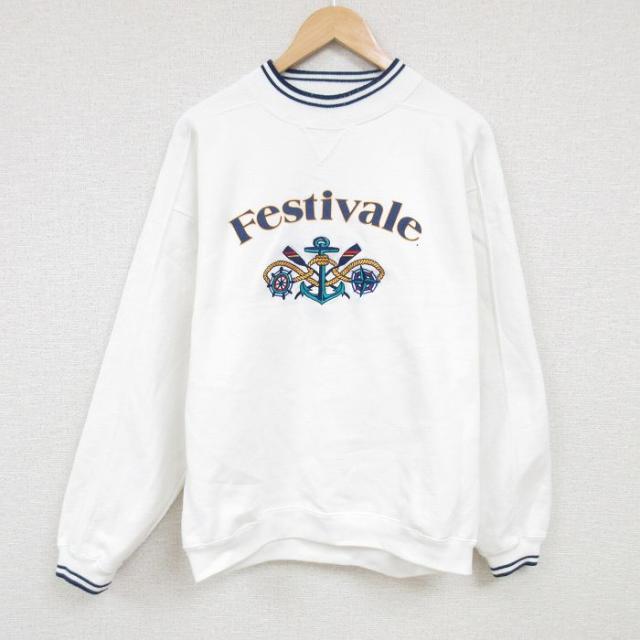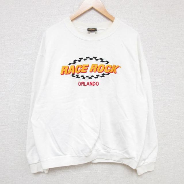 【商品名】 XL★古着 長袖 スウェット メンズ 90年代 90s 家 刺繍 クルーネック USA製 白