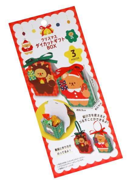 ダイカットギフトBOX クリスマスパーティー柄 3個入 [色柄指定不可] (100円ショップ 100円均一 100均一 100均)