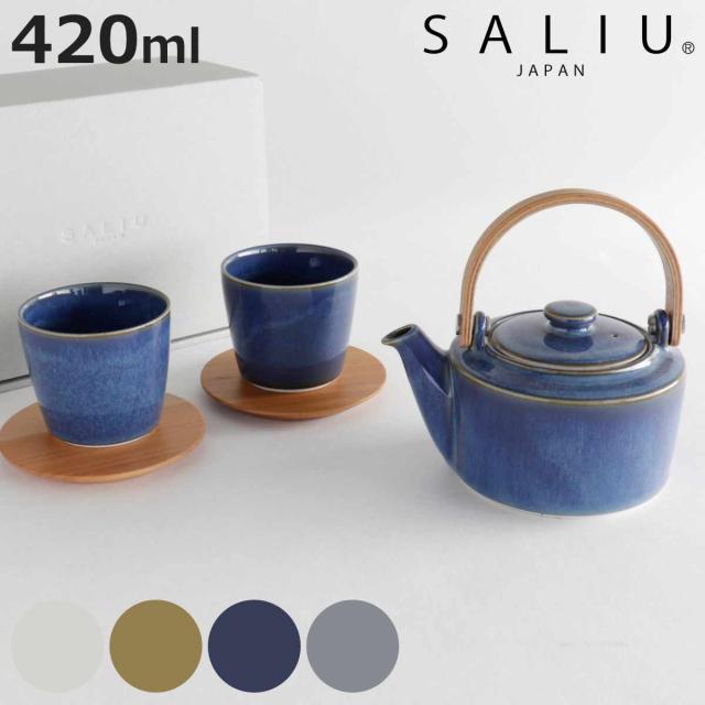 土瓶 湯呑み 茶敷付き ギフトセット 420ml SALIU 祥 磁器 ( 急須 湯飲み 湯呑 湯のみ ティーポット コースター 茶こし付き お茶 紅茶 ハーブティー シンプル ティータイム 普段使い おしゃれ 美濃焼 )