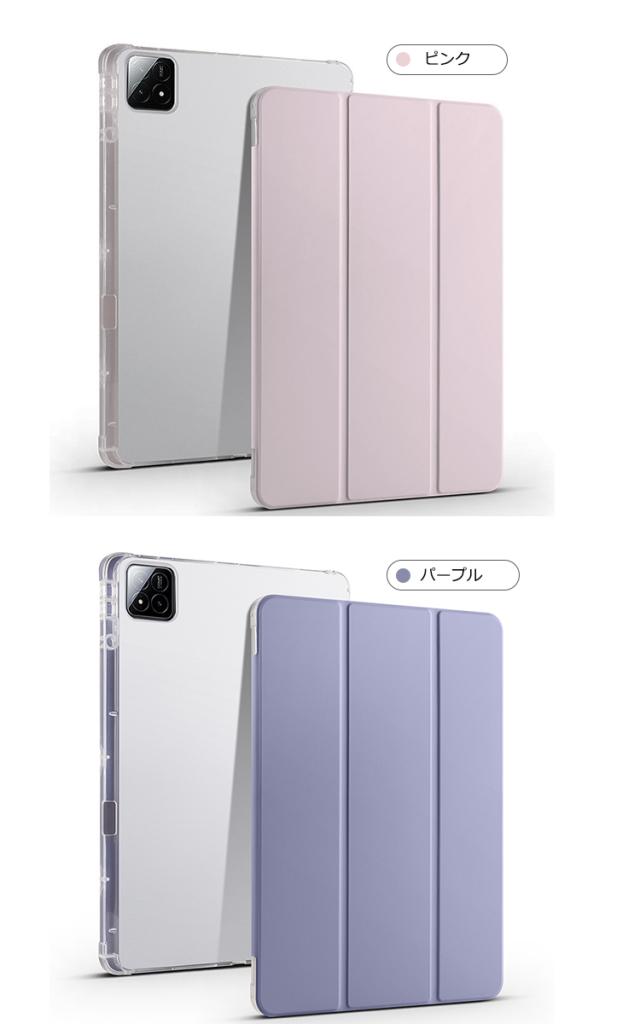 Xiaomi Pad 7/7 Pro ケース 11.2インチ 手帳型 カバー オートスリープ 機能付き 背面透明 ソフトケース 角 保護 コーナーバンパー スタンド機能 小米 シャオミ パッド7/7プロ 衝撃吸収 シンプル おしゃれ タブレットケース タブレットカバー