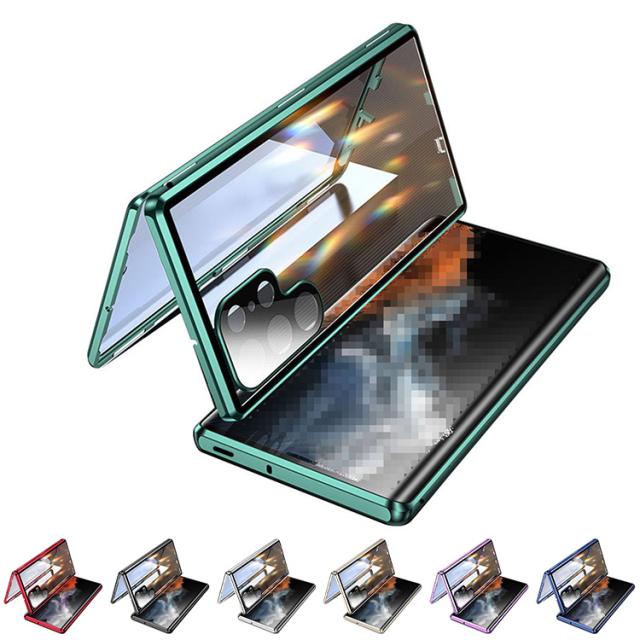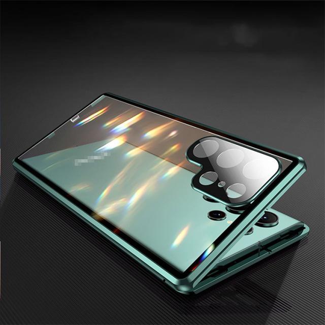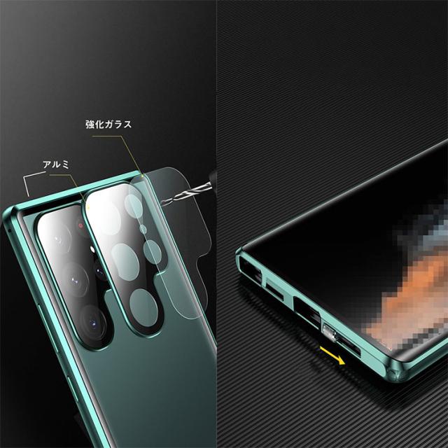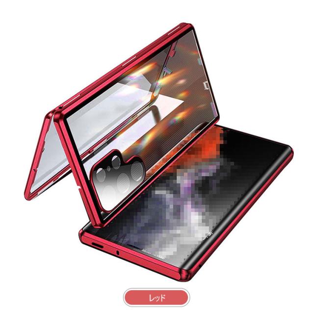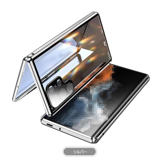 Galaxy S25 ケース アルミ バンパー S25+ S25 Ultra カバー 前後強化ガラス かっこいい アルミバンパー ロック付き カメラ保護 クリア 透明 両面 マグネット固定 全面保護 Samsung サムスン ギャラクシー S25/S25 プラス/S25 ウルトラ アンドロイド おすすめ