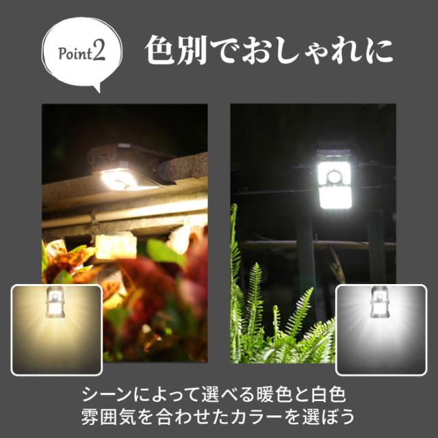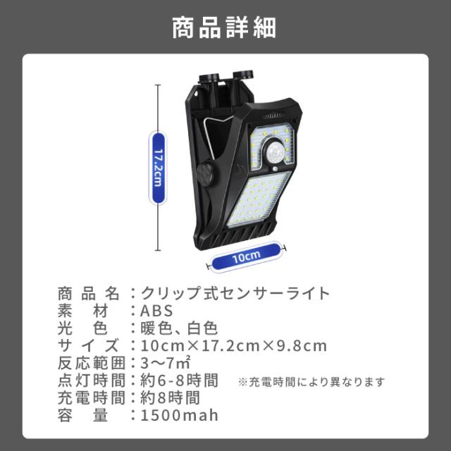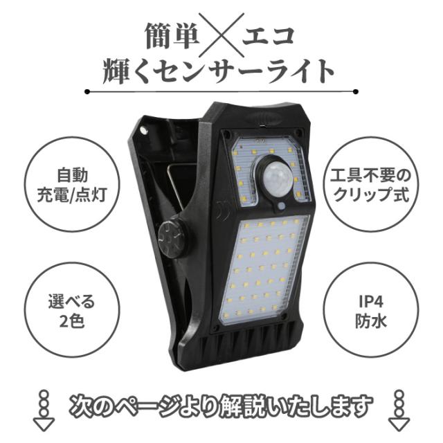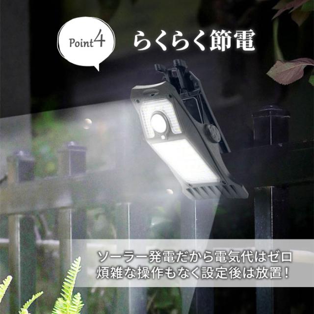 センサーライト 屋外 led 防水 ソーラー ライト 2個 セット 人感センサー クリップ 防犯 玄関 おしゃれ 明るい