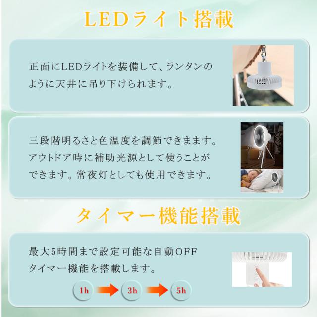 【6台セット】扇風機 充電式 dcモーター リビング ledライト付き 卓上扇風機 usb 静音 タイマー付き 壁掛け 吊り下げ コードレス サーキュレーター ファン 小型 折り置み 携帯型扇風機 扇風機 キャンプ アウトドア 省エネ 節電 3段階調節 涼しい 空気循環 1年保証 送料無料
