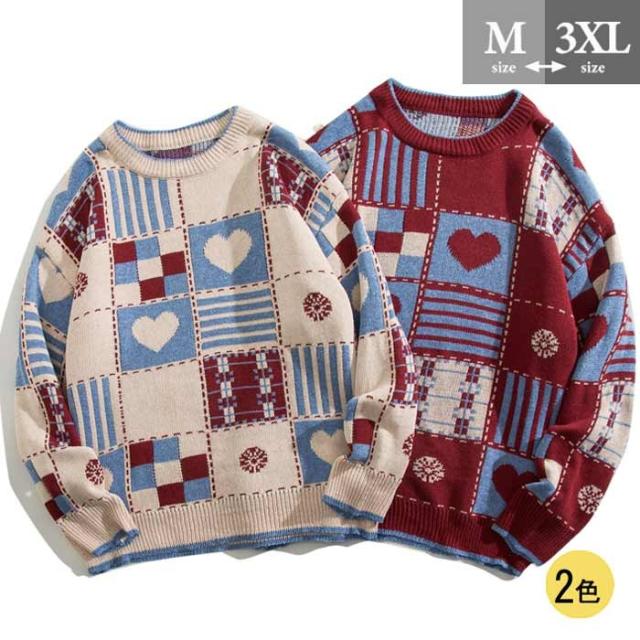 セーター レディース ニットセーター 男女兼用 メンズ レディース ニット クリスマス ニットセーター Xmas Christmas サンタ服 長袖 トップス ハット柄 ゆったり 秋冬 体型カバー おしゃれ カジュアル 可愛い 暖かい kr002m3cyh5 kr002m3