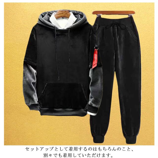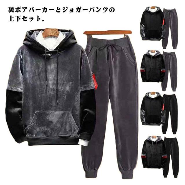 長袖 部屋着 メンズ 寝巻 ルームウェア 上下セット セットアップ ジャージ 裏起毛 もこもこ ジャージ セットアップ 裏ボア 厚手 スウェット スポーツウェア 防寒 秋冬 ジョガーパンツ ロングパンツ フード付き 暖かいパンツ 運動着 釣り 秋 冬 無地 大きいサイズ