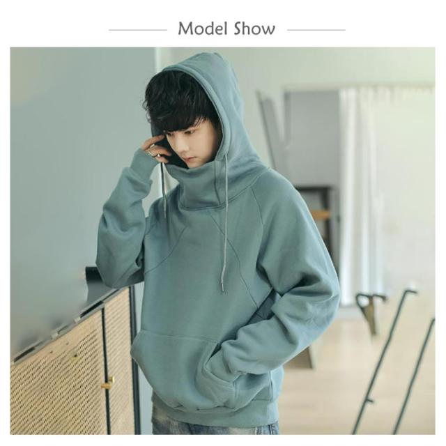 メンズ パーカー ハイネックパーカー ボリュームネック 無地 裏起毛 パーカー ボリュームネック プルオーバー トップス スウエット 大きいサイズ フード付き カジュアル ストリート ゆったり