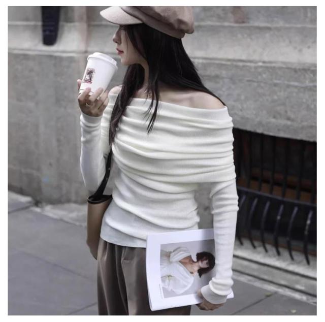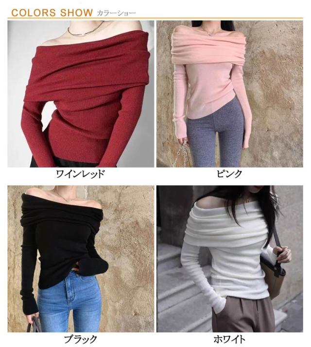 | 全8色 フェミニンな印象を演出するオフショルダーニットセーター | |