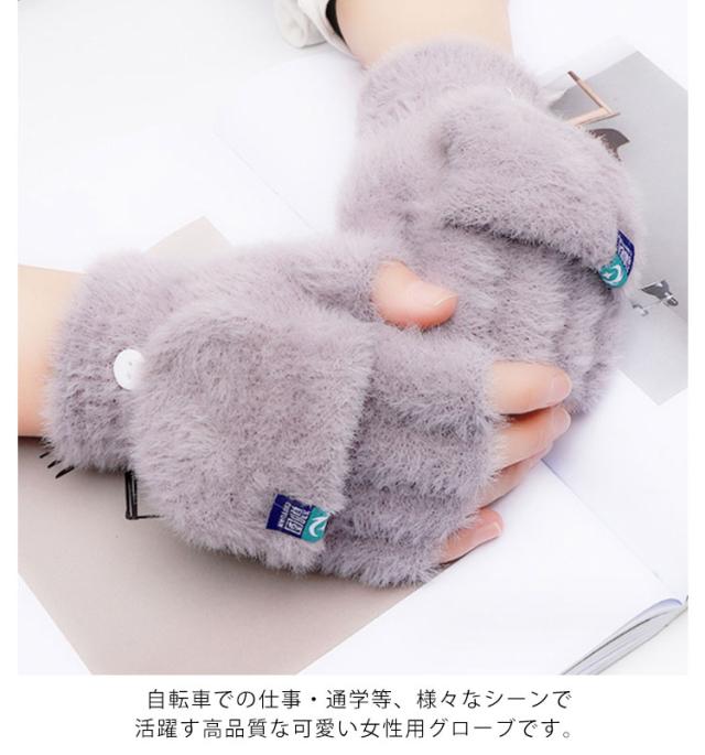 自転車 もこもこ ファー ファー手袋 手袋 スマホ対応 指穴 暖か もこもこ ミトン 指なし あったか 指抜き グローブ ふわふわ 裏起毛 ハンドウォーマー スマホ 防寒 レディース ギフト 秋冬 女性 暖かい