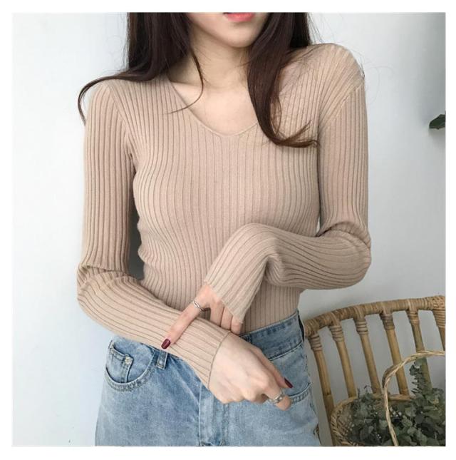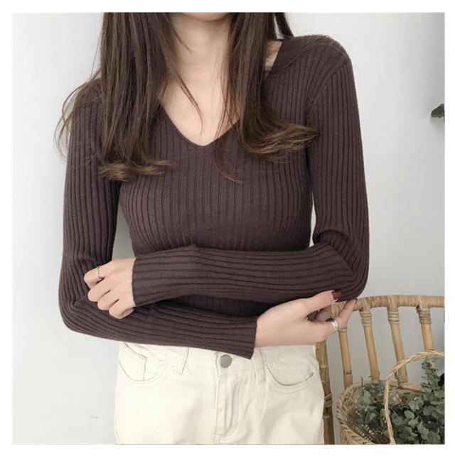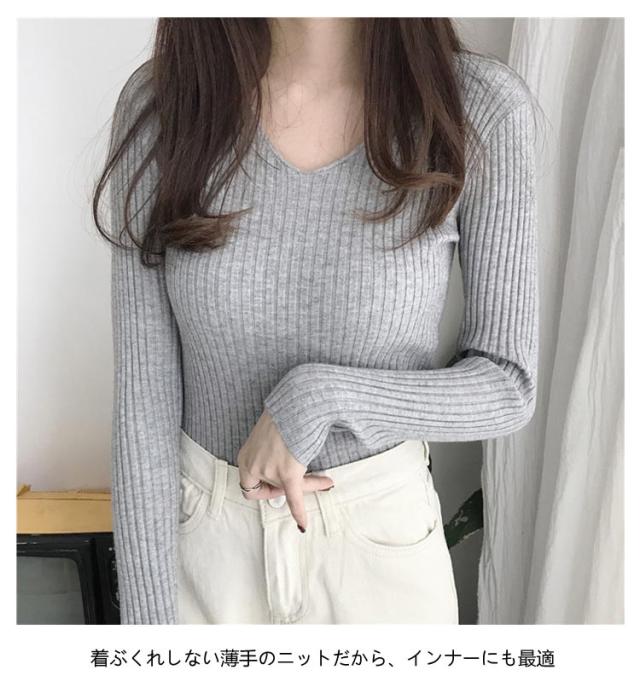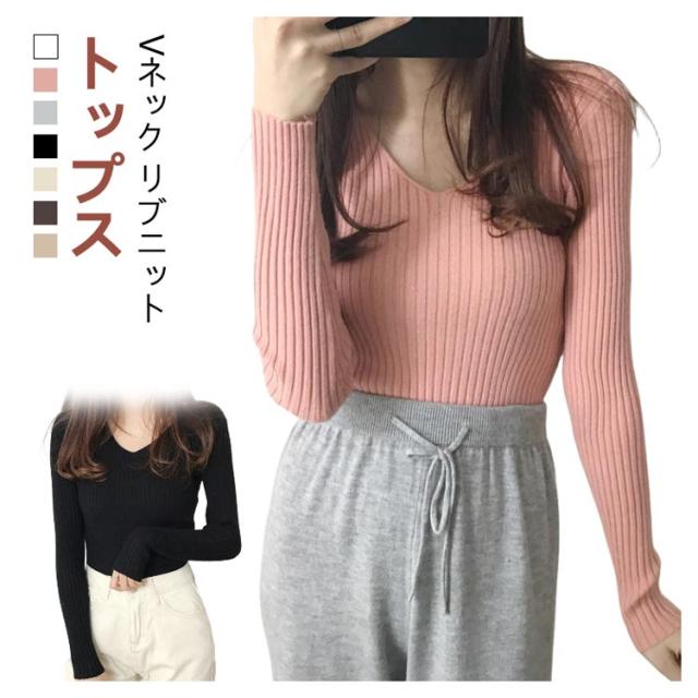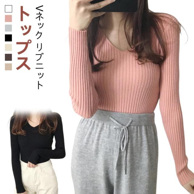 | Vネック リブニット トップス ヘルシーな女性らしさを演出できる、Vネックのニットトップス。 なデザインでどんなコーデにも合いやすいです。 着ぶくれしない薄手のニットだから、インナーにも最適 | |