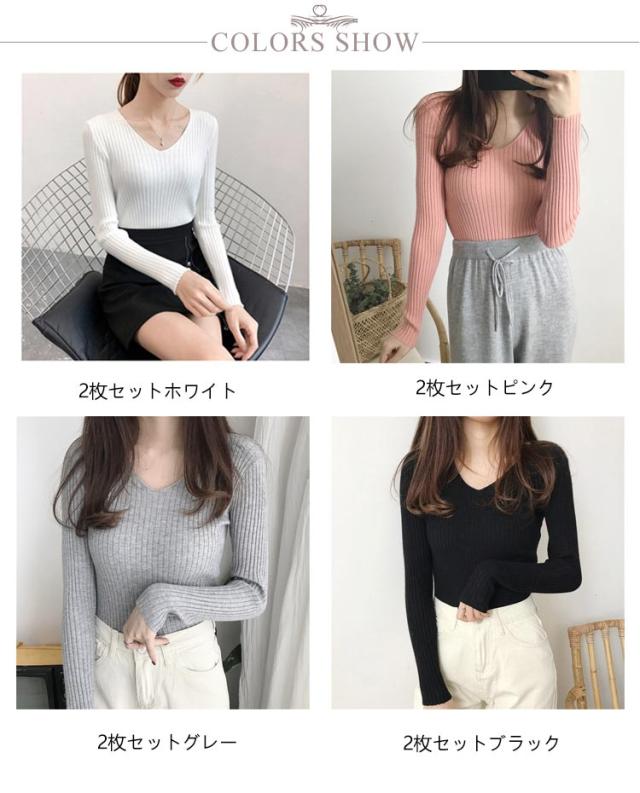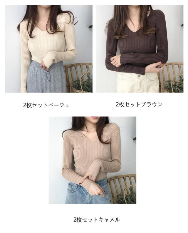 【2枚セット】ニット ニットインナー Vネック 【2枚セット】ニット 秋 ニットトップス 冬 ニット 無地 リブニット トップス 長袖 秋冬 Vネック セーター 無地 長袖ニット カジュアル