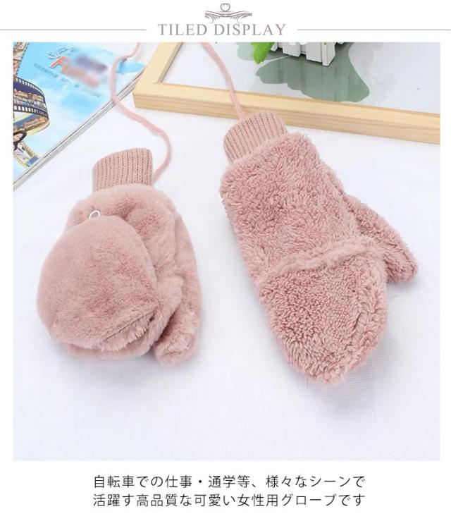 もこもこ 自転車 ミトン 手袋 暖か ファー手袋 レディース スマホ対応 指なし ファー ふわふわ もこもこ 防寒 裏起毛 ハンドウォーマー スマホ あったか 指抜き ギフト 秋冬 女性 暖かい