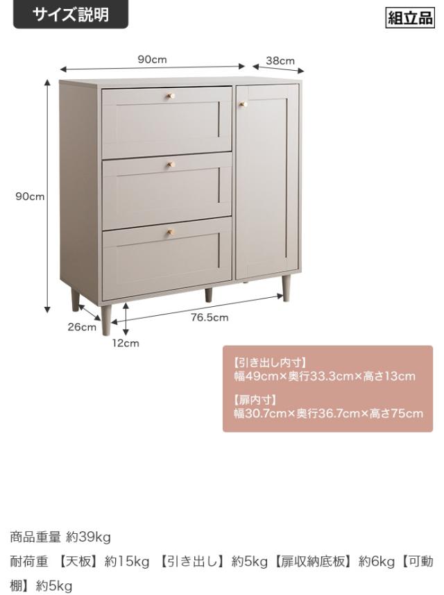 本体:約 W90 x D38 x H90cm