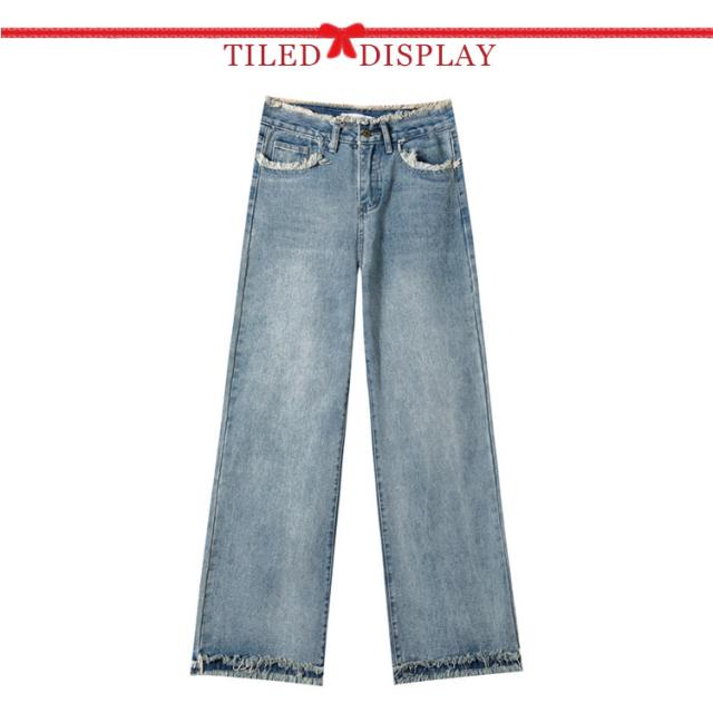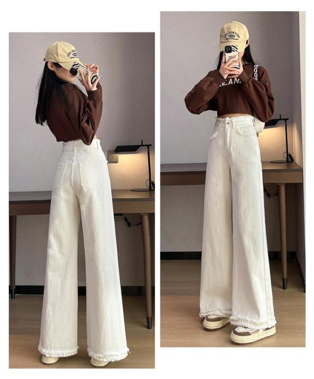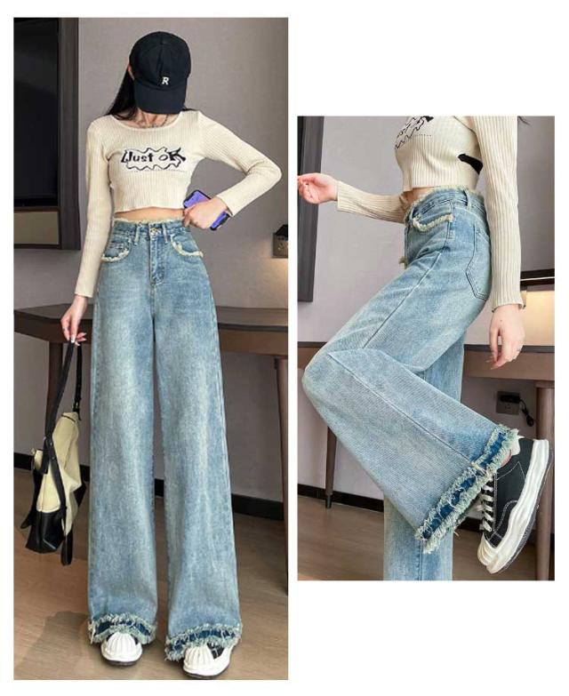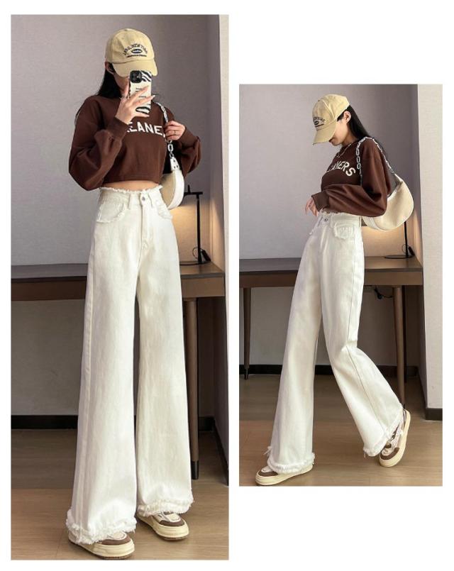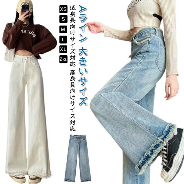 ワイドパンツ ハイウエスト 低身長 ワイドパンツ デニム ジーンズ ストレッチ デニムパンツ レディース 高身長 デニムパンツ Aライン 大きいサイズ 裾フリンジカーブデニムパンツ 春 秋冬 きれいめパンツ ハイウエスト ジーンズ 美脚