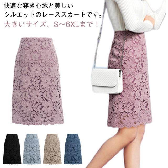 総レース きれいめ ひざ丈 可愛い レーススカート S〜6XL!大きいサイズ フェミニン 通勤 L S〜6XL!大きいサイズ セクシー 大きいサイズ 着?せ 花柄レース S M オフィス XL 2XL 3XL 4XL 5XL