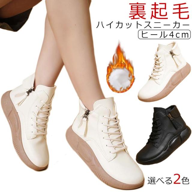 ハイカットスニーカー 厚底 外反母趾 スニーカー シューズ 暖かい 裏起毛 厚底スニーカー スニーカー サイドジッパー ヒール4cm ショートブーツ 靴 おしゃれ レディース コンフォートシューズ 厚底スリッポン カジュアル 運動靴 ウォーキングシューズ 黒
