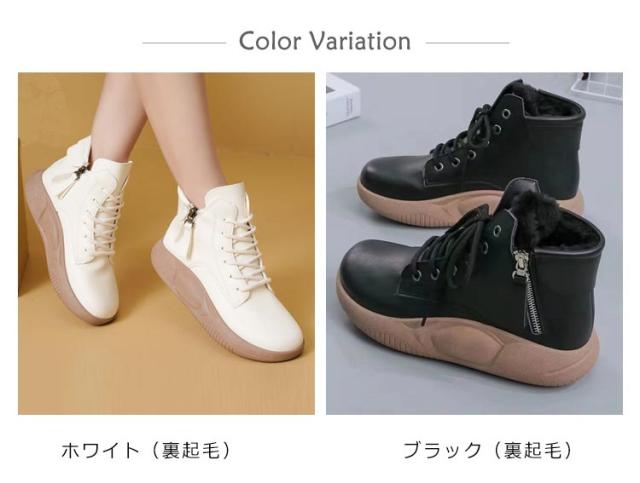 | 裏起毛ハイカットスニーカー 防寒恒温効果最高!爪先まで内側全体に覆われた贅沢なボアがあり、柔らかい肌触りを与えられ、足をしっかり包み込み、暖かい空気は逃がさず、外からの寒い空気もしっかりシャットアウトしてくれます。 ソフトで快適なPUのアッパー、良好な通気性の質感を使用。 美脚効果!4センチメートル古典的なヒール、厚底デザインで、さり気なく身長アップ、美脚効果を実現、自信を増強します。女性綺麗な姿を示します。視界が変わる魔法のシューズです。 | |