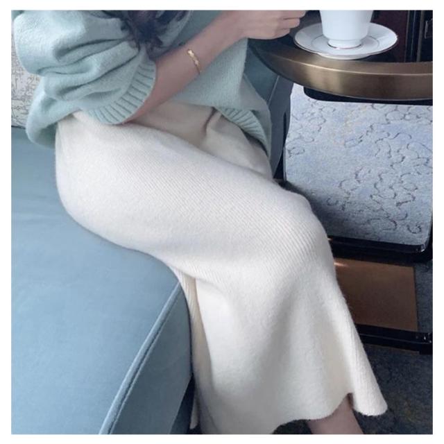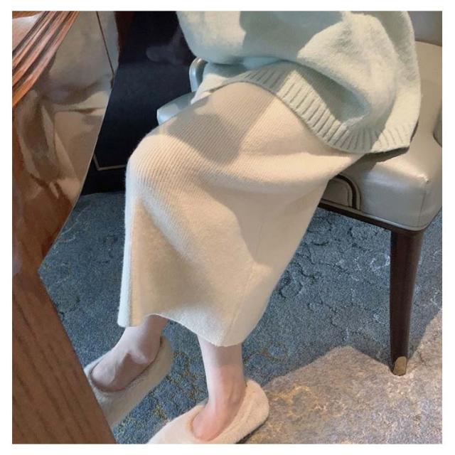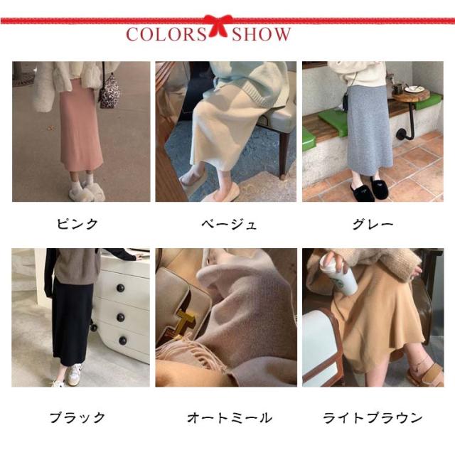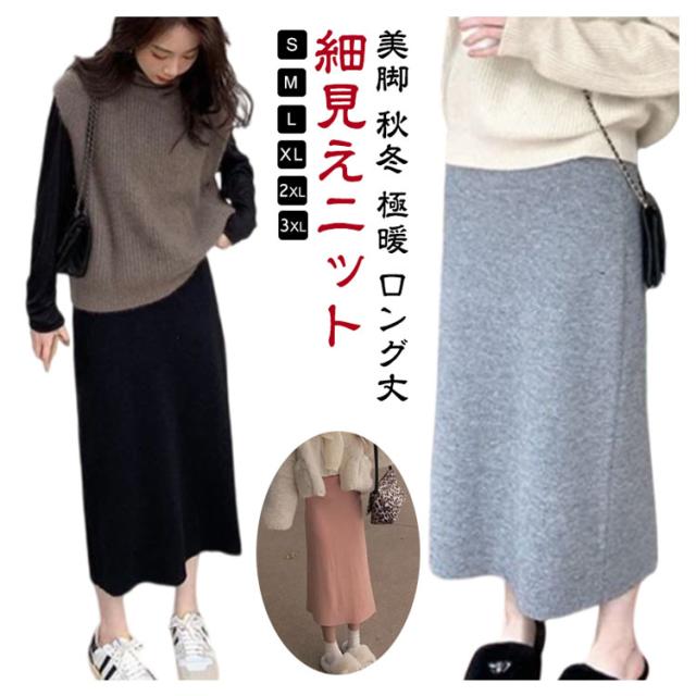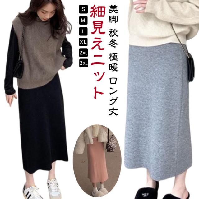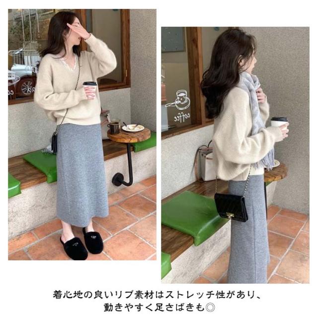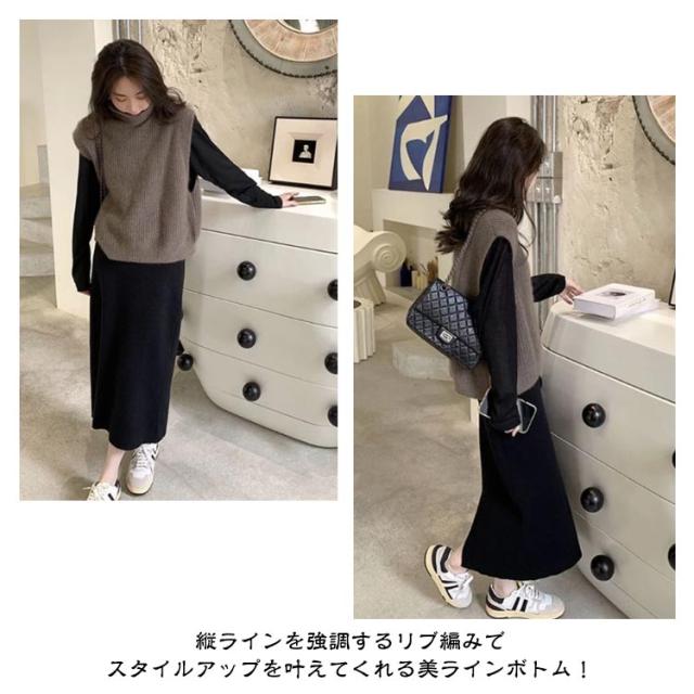 グレー リブ オフィス ボトムス ロングスカート タイトスカート ニットタイト ニットスカート 全6色 ナロースカート レディース ウエストゴム シンプル ロング丈 きれいめ 黒 リブニット スカート 通勤 美脚 秋冬 極暖 ストレート