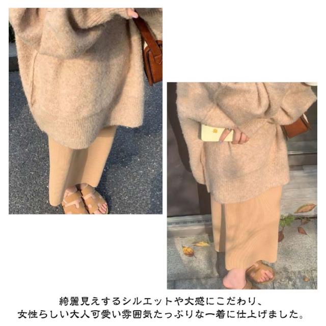 | 細見えニット S〜3XL 綺麗見えするシルエットや丈感にこだわり、女性らしい大人可愛い雰囲気たっぷりな一着に仕上げました。 程よい厚みと温かさのあるリブが心地よく、もっちり質感とシルエットが美しい。 着心地の良いリブ素材はストレッチ性があり、動きやすく足さばきも◎ 縦ラインを強調するリブ編みでスタイルアップを叶えてくれる美ラインボトム! ウェスト部分はたっぷり伸びるゴム仕様。 | |