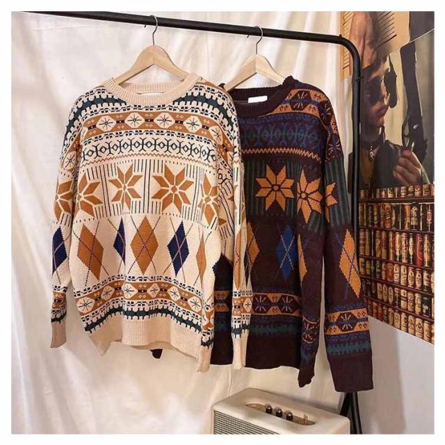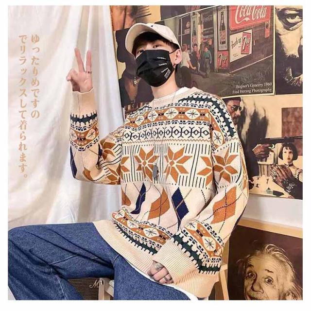 | 総柄で大人っぽく、カジュアルなアクセントをプラスするニットセーター。 ヴィンテージ感のあるデザインがパンツスタイルにもピッタリ合う1枚です。 ゆったりめですのでリラックスして着られます。 柔らかなニット素材を使用した、見た目も着心地もあたたかなプルオーバー。 鮮やかな色合いですので気分も上がりますし、写真映えもします。 サイズもM〜2XLと豊富で男性も女性もゆるっと着られておすすめです。 | |
