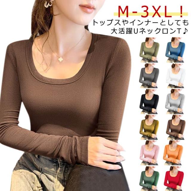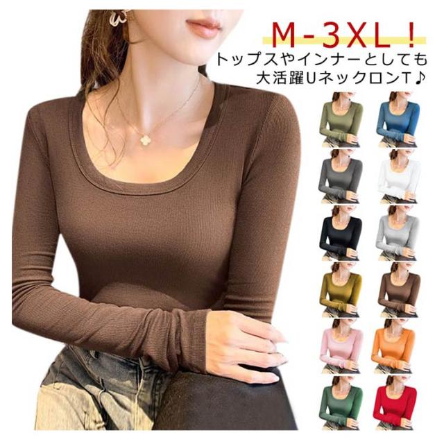 | M-3XL!トップスやインナーとしても大活躍UネックロンT♪シンプルで使いやすさ抜群!長袖トップス。 リブ生地が縦長効果を発揮して着痩せが期待できる一着。 体に優しくフィットし、ストレッチ性も高く着心地快適です。 程よい薄さとフィット感でキャミワンピやレイヤードコーデにもおすすめ。 ジャケットや羽織のインナーとしても大活躍! | |