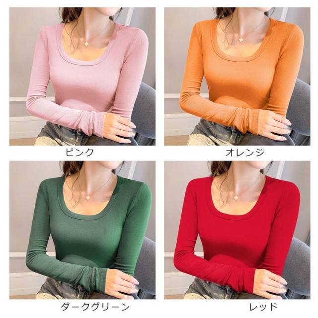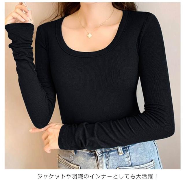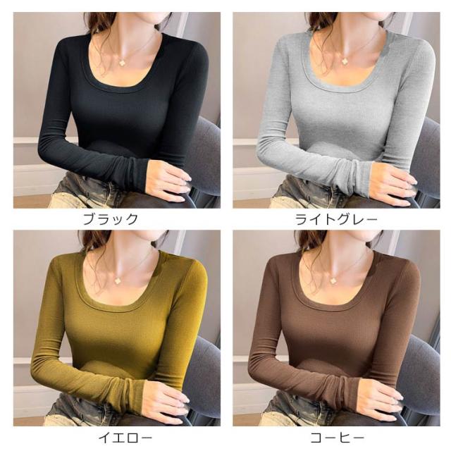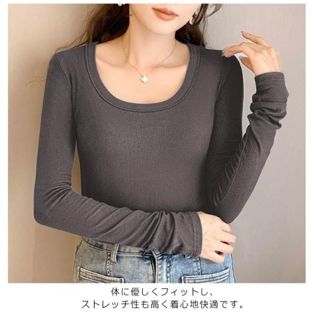 カジュアル Uネック Tシャツ フィット 長袖tシャツ ロンT ルームウエア Uネック 春秋 カットソー 薄手 通気性 トップス 長袖 タイト リブ 伸縮性 肌着 オフィス OL きれいめ 無地 カジュアル オシャレ 女性用 通勤 重ね着 大きいサイズ デート 春 秋 冬