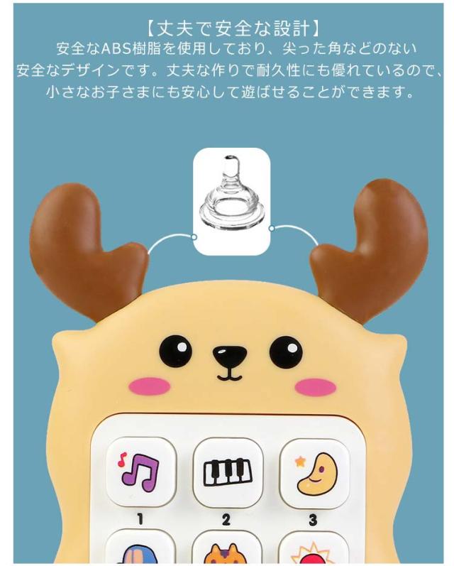 | 【赤ちゃんを飽きさせない多機能スマートフォンおもちゃ】さまざまな種類の電子音やミュージックで、はじめてテクノロジーにふれる赤ちゃんは楽しみながら知力をのばすことができます。スマホやリモコンに興味を持ち始めたお子様にぴったり!感覚的な遊びと操作的な遊びができます。 【プレゼントにも最適】 出産祝いやお誕生日、初節句、クリスマス、入園のお祝いなどの贈り物にもぴったりです。ご友人やお知り合いなど大切な方へのお祝い事のプレゼントとしても大変喜ばれますよ♪なるべく早く英語に触れさせたい方にもおすすめです。 【0歳からの知育玩具】 はじめてのスマホは、0歳から遊べるかわいいスマホの知育玩具です。小さなお子さまの好奇心を刺激するカラフルなデザインで、お子さまの「目と手の協調性」「想像力」「聴覚の感性」などの発達を促す仕掛けがいっぱい詰まっています。ハイハイ期からお子さまの成長をサポートしてくれます。 【寝かしつけサポート】自然や単調な音が心地よく睡眠用の曲もあり、寝かしつけをサポートしてくれます。二段階に音量調節が可能で、赤ちゃんの耳にも優しい65デシベル未満の音量です。 【丈夫で安全な設計】 安全なABS樹脂を使用しており、尖った角などのない安全なデザインです。丈夫な作りで耐久性にも優れているので、小さなお子さまにも安心して遊ばせることができます。 | |