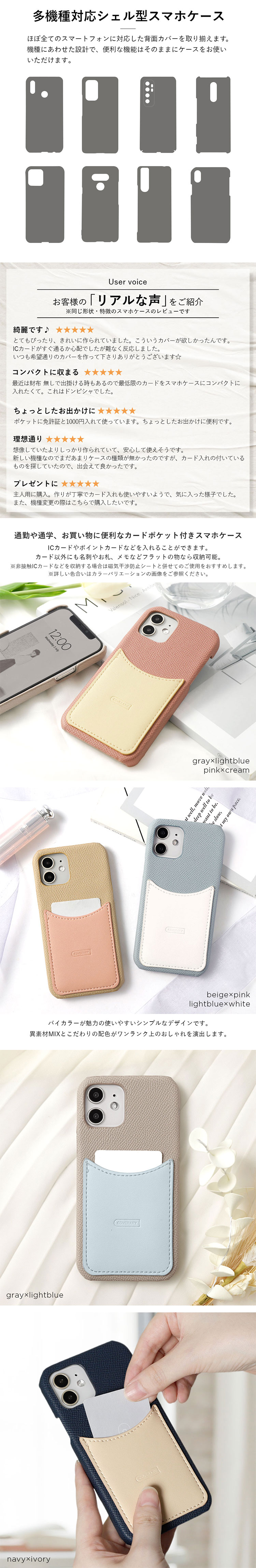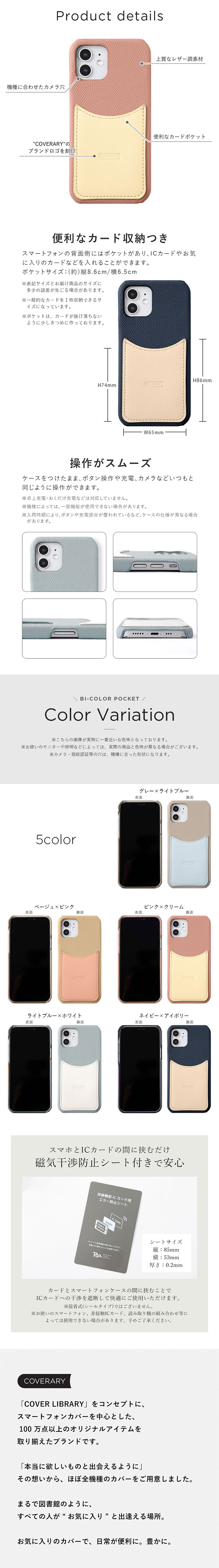 ■異素材MIXとバイカラーが魅力のレザー調スマホケース