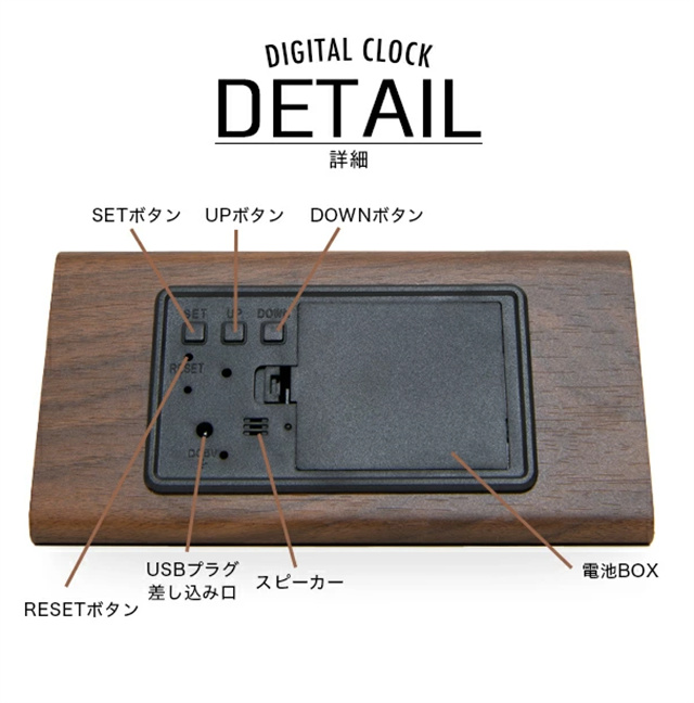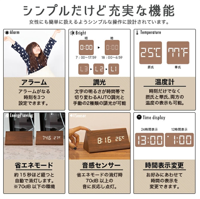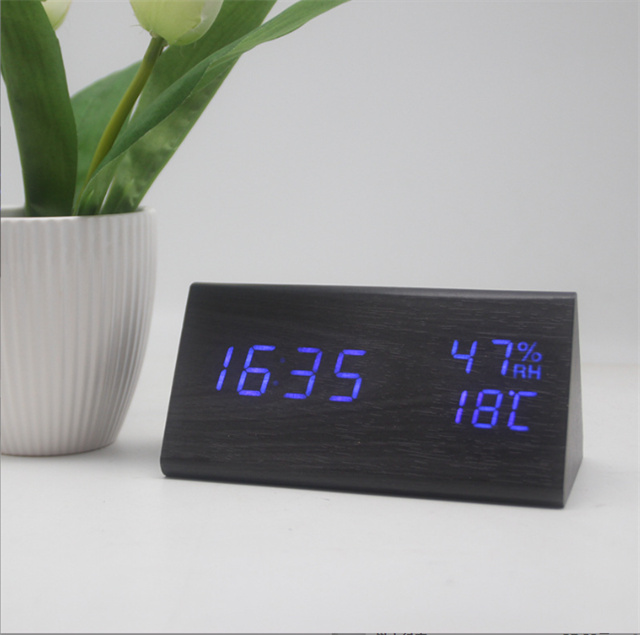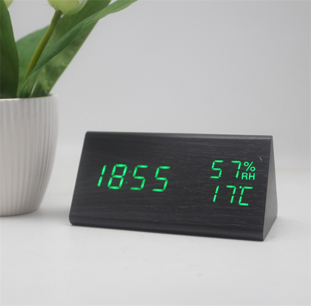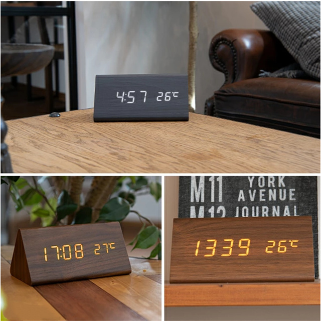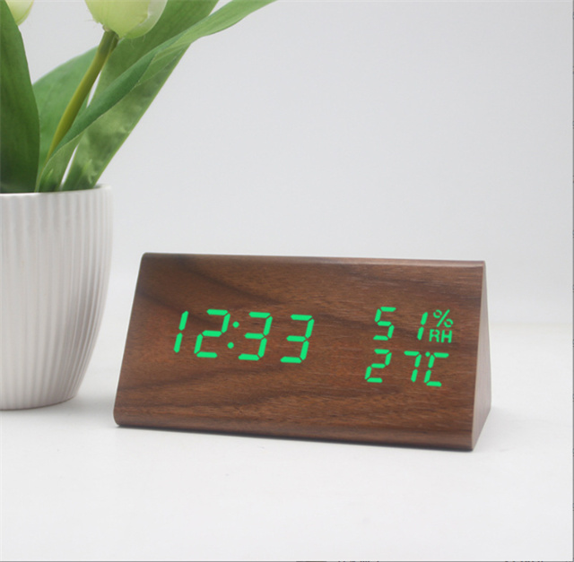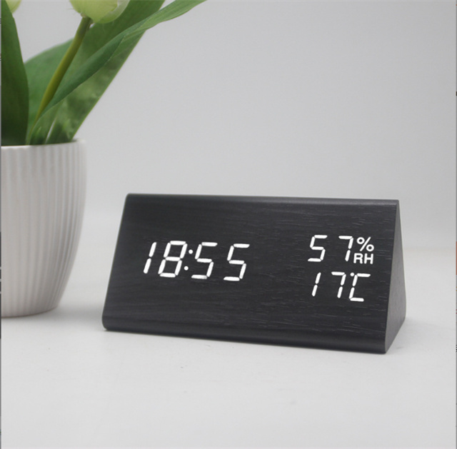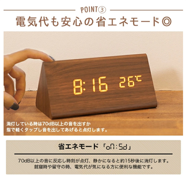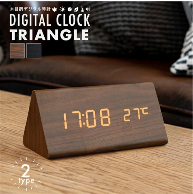 デジタル時計 おしゃれ 置き時計 木目調 デジタルクロック TRIANGLE 〔置時計 卓上 時計 目覚まし時計 日付 新生活 デジタル クロック アラーム アラームクロック かわいい デザイン LED 光る シンプル インテリア ギフト〕