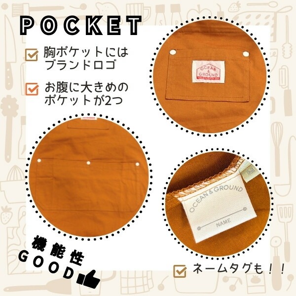 オーシャン&グラウンド オーシャンアンドグラウンド Ocean&Ground O&G エプロン エプロンセット 2点セット キッズエプロン 子供エプロン かぶり型 首掛け型 クロス型 COOKDAY O&G リニューアル サンズマーケット