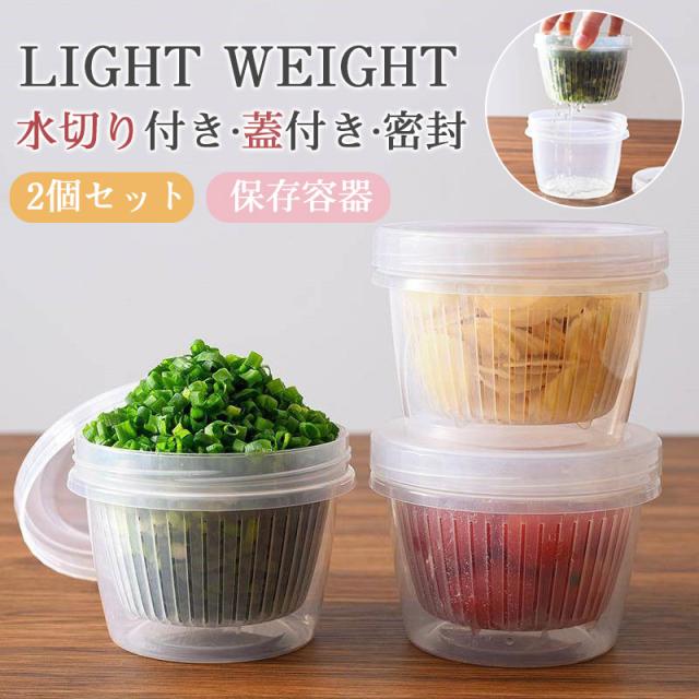 野菜 保存容器 2個セット ミニ保存容器 ニンニク 大蒜 玉ねぎ 生姜 唐辛子 玉米の粒 収納ケース 水切り付き 密封 食品 収納ボックス 蓋付き