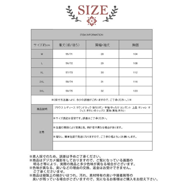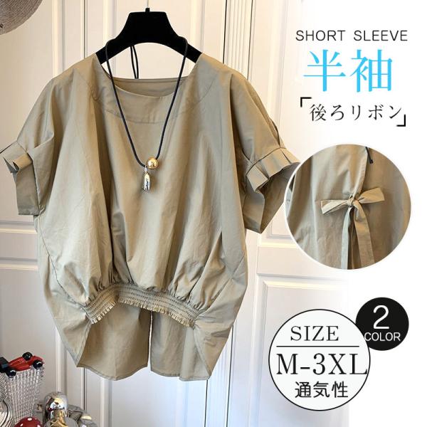 ブラウス レディース ラウンドネック 後ろリボン 半袖 ゆったり エレガント 上品 オシャレ オフィス きれいめ トップス 夏物 無地 きれい