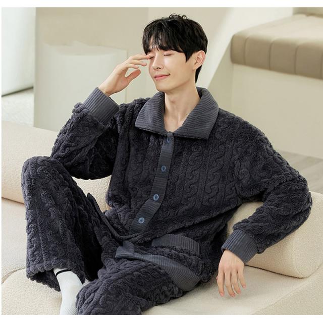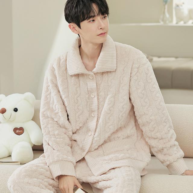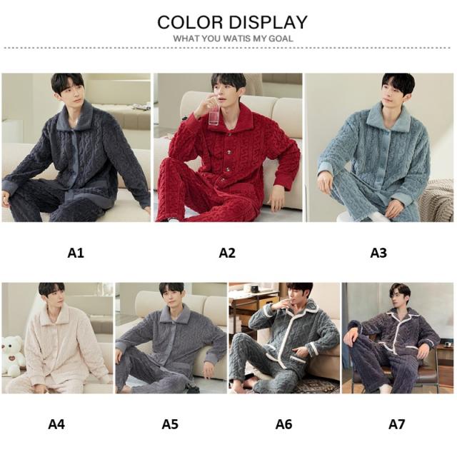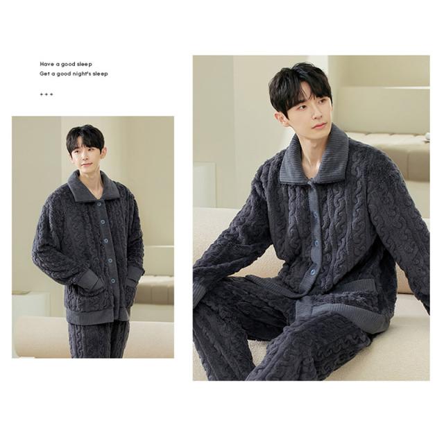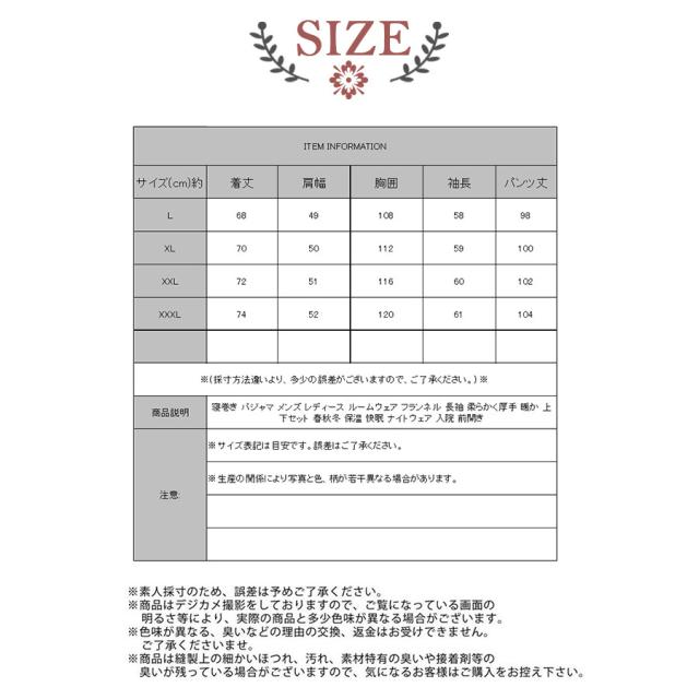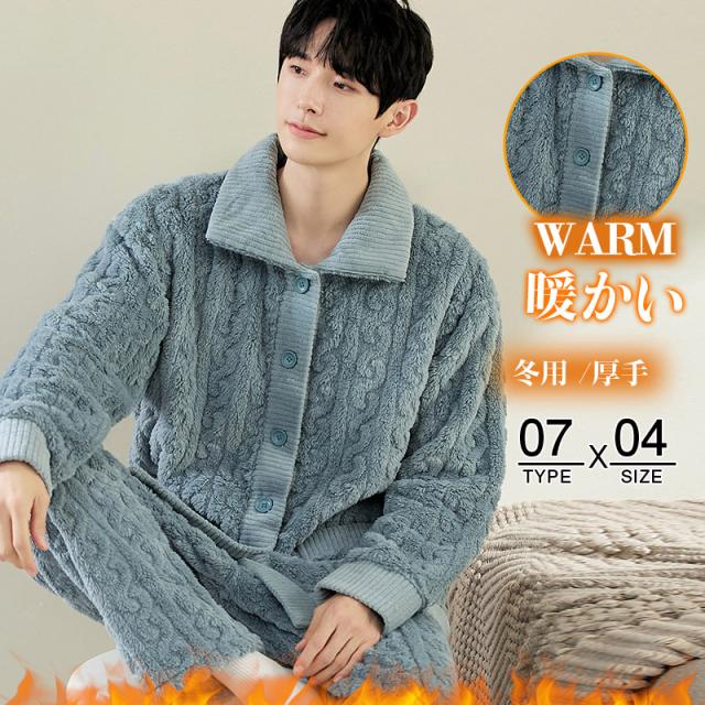 寝巻き パジャマ メンズ レディース ルームウェア フランネル 長袖 柔らかく厚手 暖か 上下セット 春秋冬 保温 快眠 ナイトウェア 入院 前開き