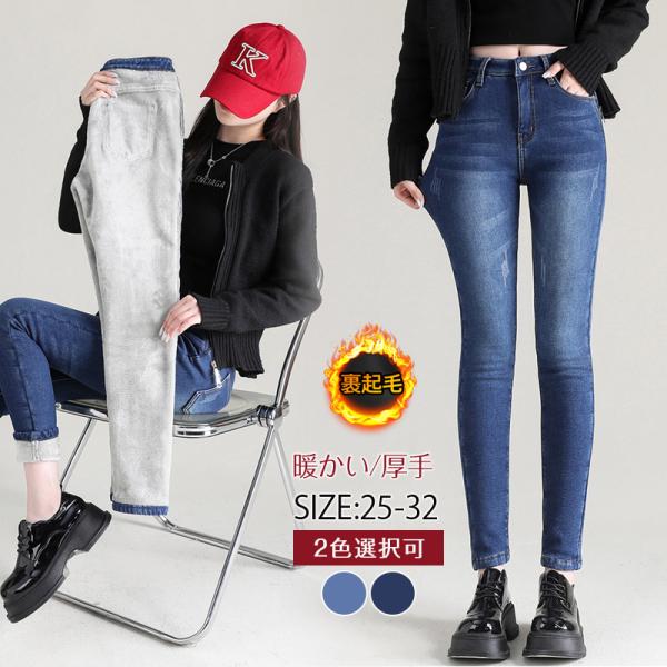 【2点で200円OFF】デニム ボトムス レディース 裏起毛 パンツ 暖パン 新品 ストレッチ 厚手 防寒 スキニー ロング丈 ハイウエスト ジーンズ