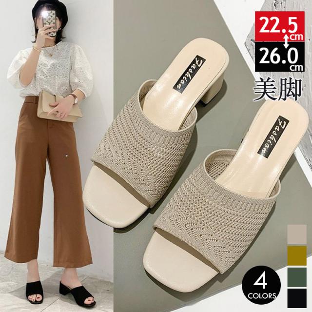 サマーサンダル夏 海 サンダル ニット 疲れにくい 韓国ファッション ミュールサンダル 太ヒール 美脚 カジュアル 快適 楽ちん 大きいサイズ