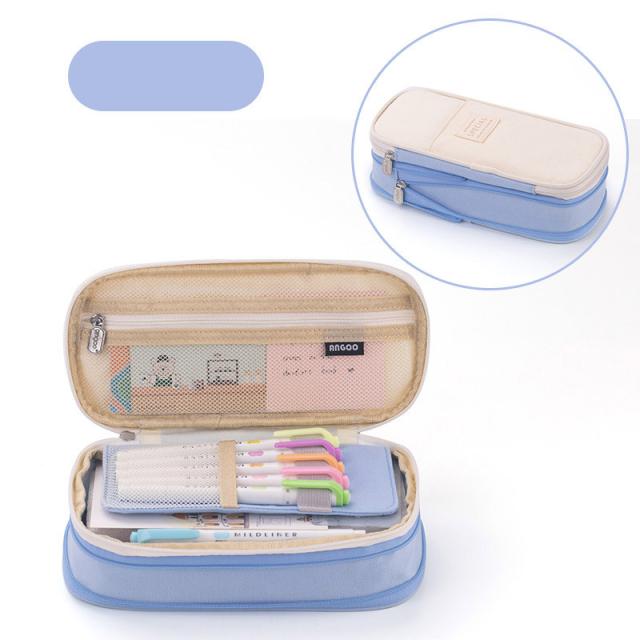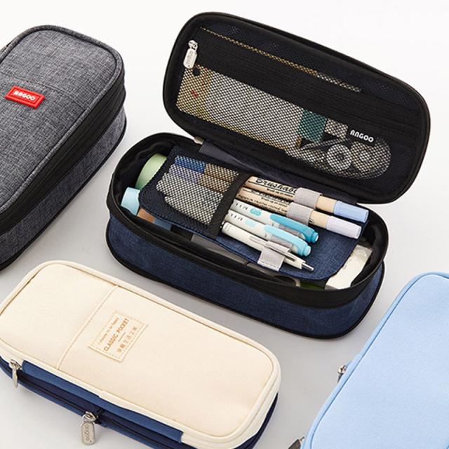筆箱 小学校 中学 女子 シンプル 大容量 仕切り 使いやすい 無地 チャック ペンケース 洗濯可