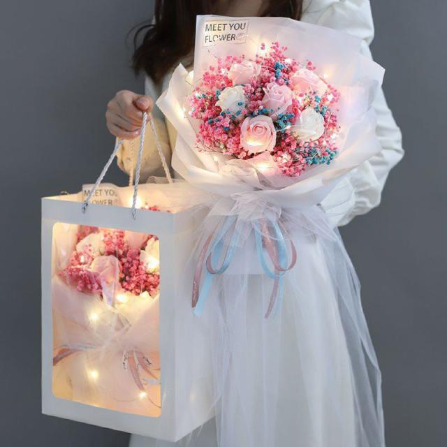 スタンディング ソープフラワー 造花 花束 アレンジメント ブーケ バラ 石鹸花 枯れない 花敬老の日 誕生日 プレゼント お祝い 香り 結婚式 母の日ギフト