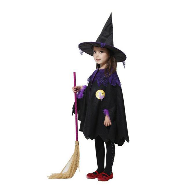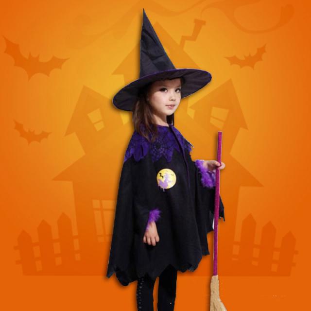 ハロウィン仮装 魔女 クリスマス キッズ用 コスチューム コスプレ衣装 マント 帽子 2点セット 魔法使い 子供 女の子 かわいい 定番 人気 変装 安い