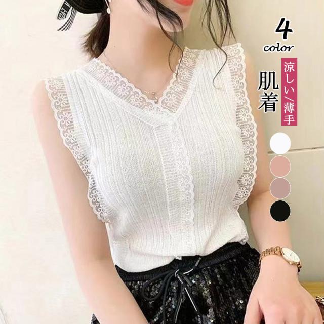 インナー レース タンクトップ インナートップス レディース トップス 接触冷感 インナーシャツ 肌着 無地 シンプル 涼しい 送料無料