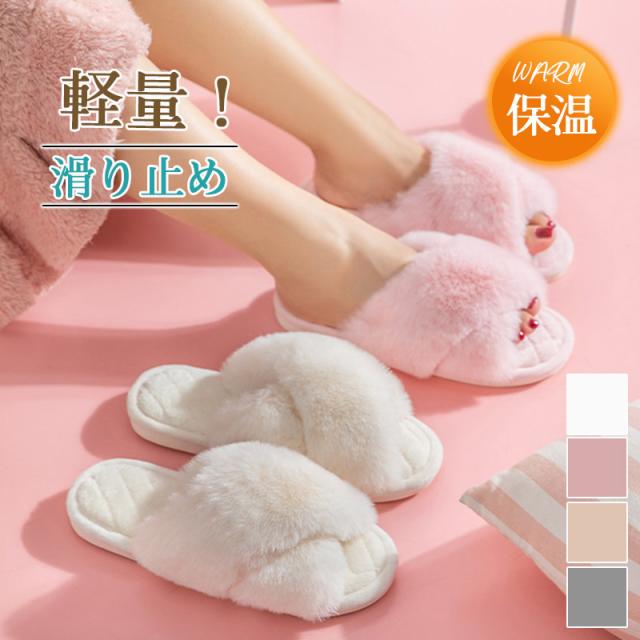 スリッパ サンダル ブラック ファースリッパサンダル 滑り止め ファー ルームウェア 厚手 靴 レディース ふわふわ 保温 防寒 モコモコ 外出