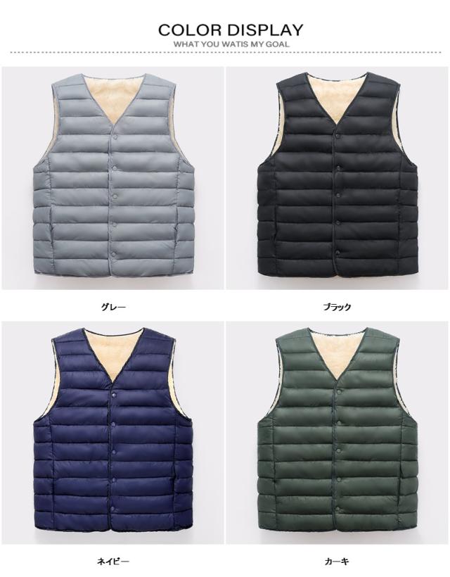 【一部即納】中綿ダウンベスト メンズ インナーベスト ブルゾン アウター裏起毛 カジュアル 前開き トップス 定番 ビジネス 無地 冬服 送料無料