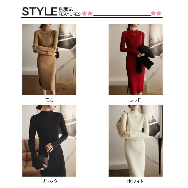 ワンピース ニットワンピース レディース 膝丈 ニット 長袖 スリット ストレッチ チュニックワンピース ニットワンピ タイト 秋冬新作 クリスマス